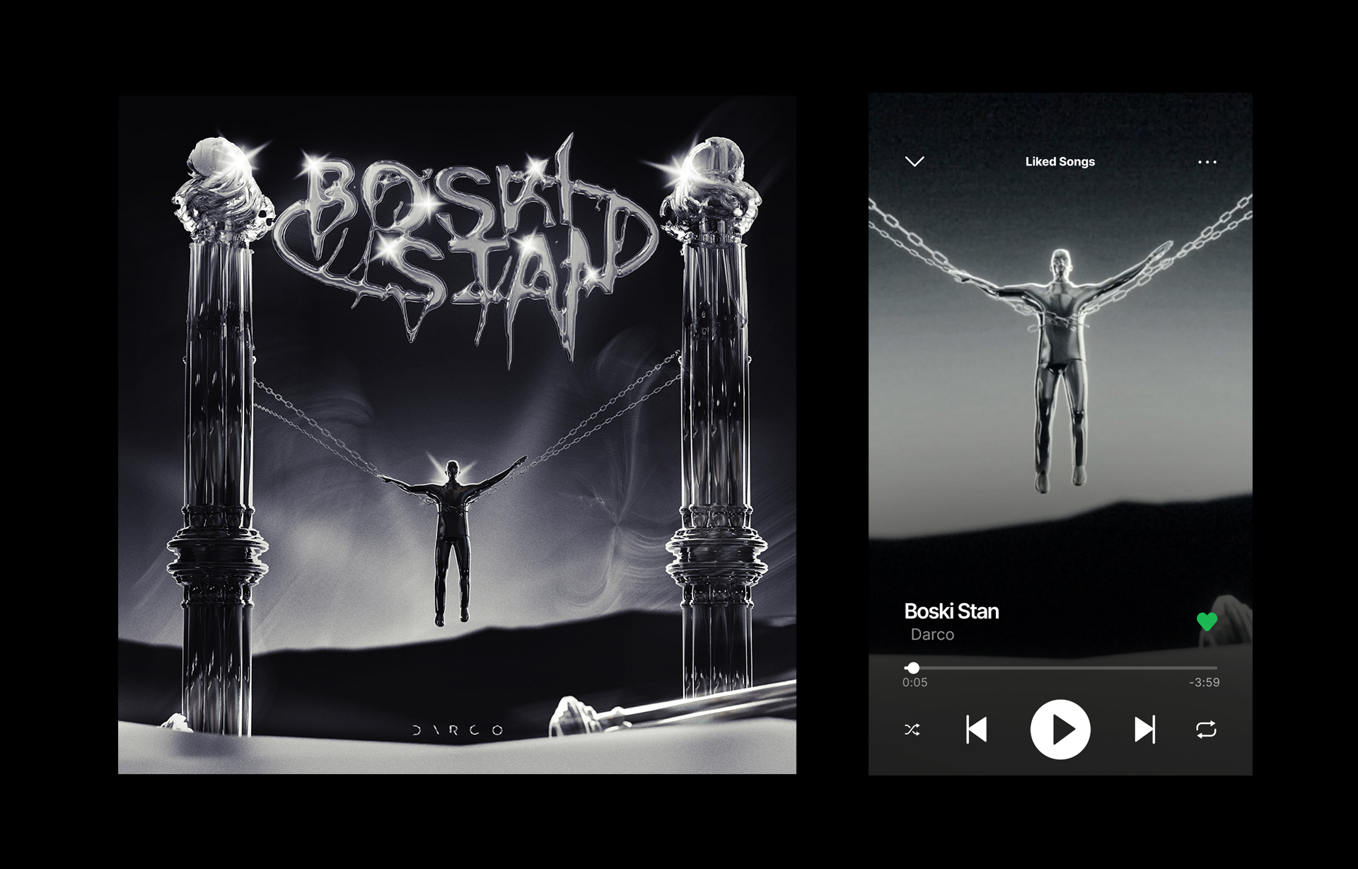 About Project: The entire artwork for the single “Boski Stan”The setting was supposed to be futuristic interesting and expressive.Client: DarcoServices: Design for streaming platform, Visualizer, Custom TypefaceYear: 2024
